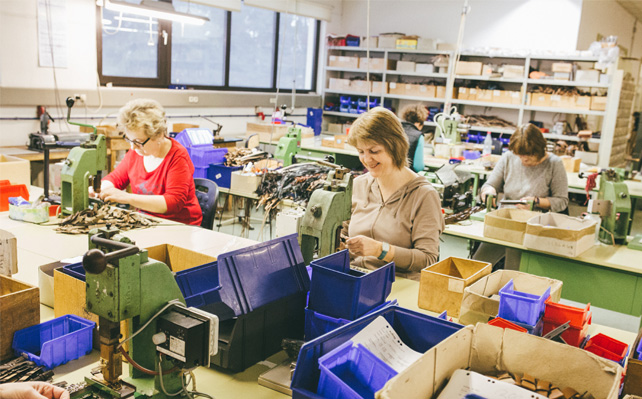 Diese werden von erfahrenen Mitarbeitern (mehrere sind schon seit mehr als 20 Jahren bei uns beschäftigt) in mehr als 50 Arbeitsschritten von Hand gefertigt.